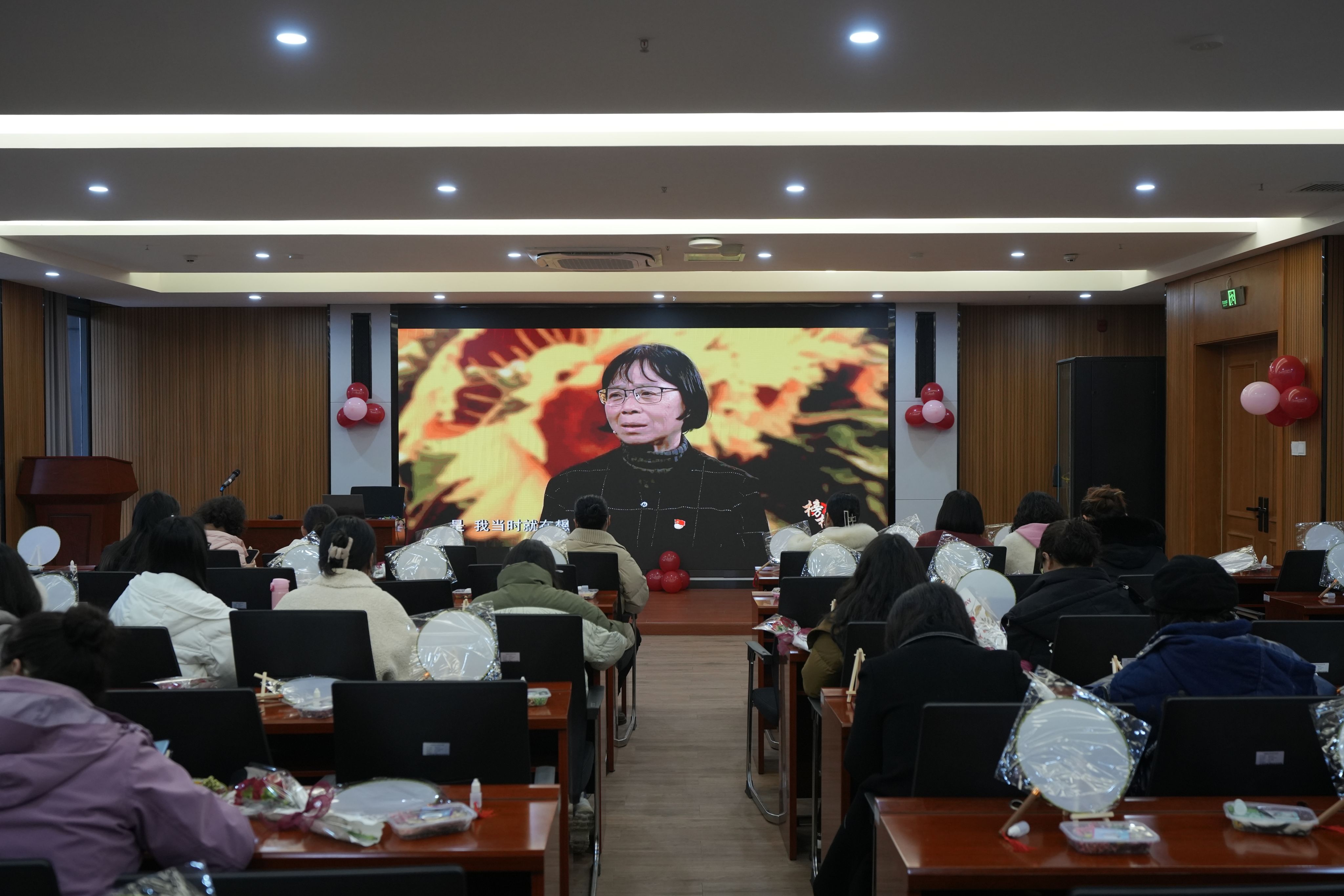 活动开始,女职工共同观看了燃灯校长张桂梅的先进事迹。张桂梅扎根云南贫困山区40多年,推动创建了中国第一所免费女子高中,2008年建校以来已帮助1800多位女孩圆梦大学校园。张老师被女孩子们亲切称为“张妈妈”。她像一束希望之光,照亮孩子们的追梦人生。观看视频后,女职工们进行热烈的讨论与分享,纷纷表示将以张桂梅同志为榜样,立足岗位,不懈奋斗,努力为办好人民满意的教育贡献智慧与力量。