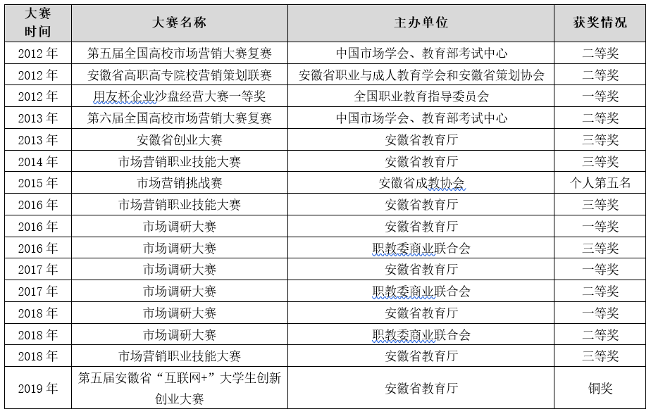 近几年市场营销专业参加大赛获奖情况