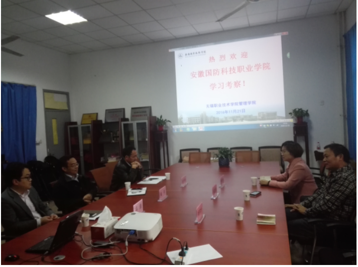 管理工程系主任张显国、工商管理教研室主任杨学分、市场营销专业教师李文君一行人赴无锡职业技术学院调研市场营销专业建设情况