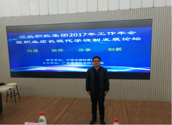 2018年1月5日至7日,店长职教集团工作年会暨职业店长现代学徒制发展论坛在广州番禺职业技术学院隆重举行,经贸管理学院副院长杨学分应邀参加该会议。