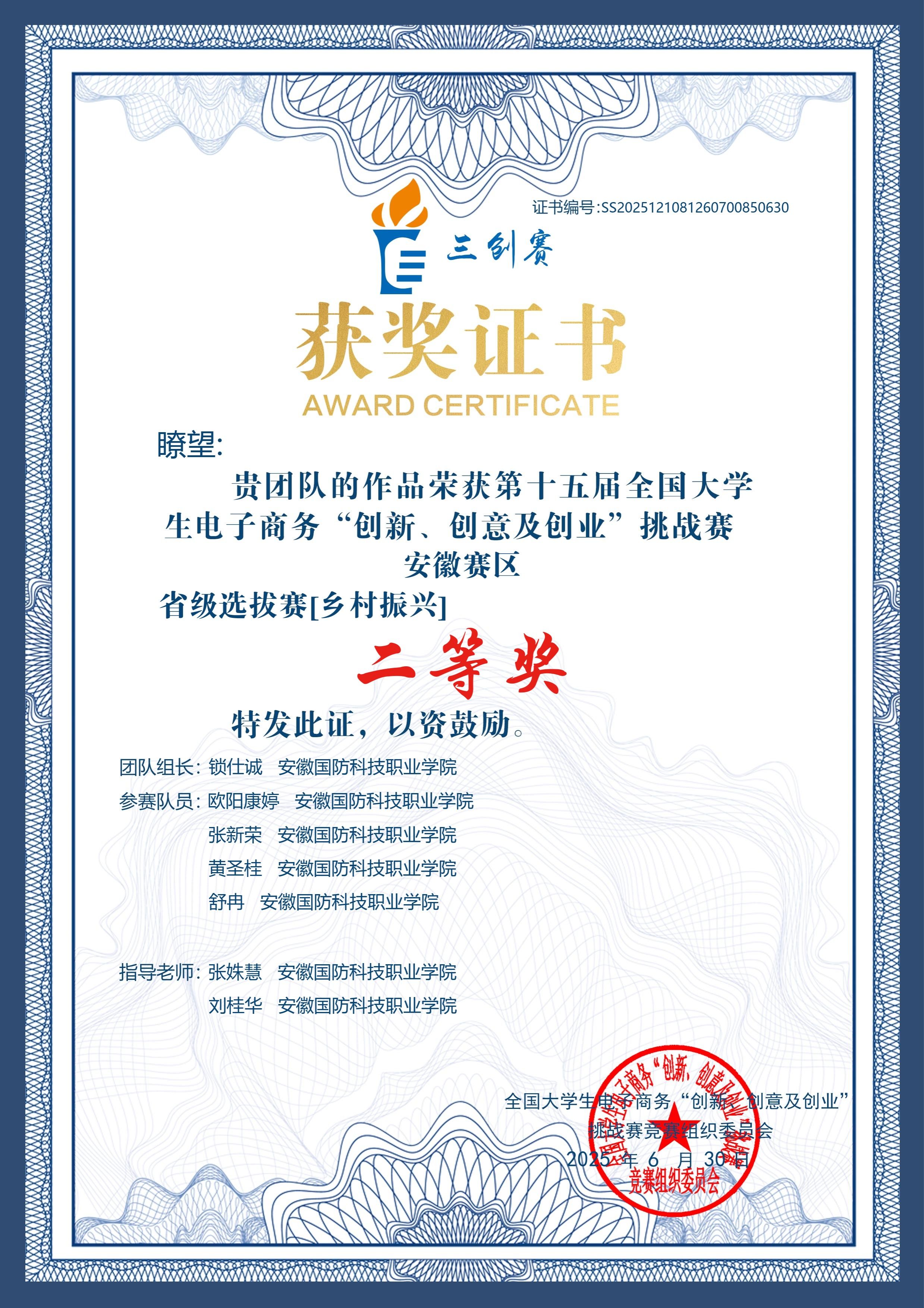 近日,在第十五届全国大学生电子商务“创新、创意及创业”挑战赛(简称“三创赛”)安徽省选拔赛的舞台上,beat365经贸管理学院“瞭望”团队凭借其扎根乡土的助农项目与出色的综合实力,在全省高校的激烈角逐中脱颖而出,荣获省级二等奖。