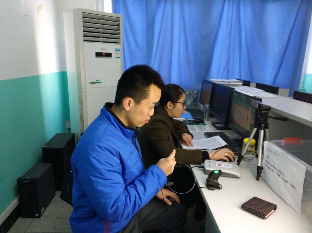 本季普通话水平测试在实训楼505普通话测试站进行,该站建有3套测试设备,学生以3人为一组,分时间段进行测试。整个测试分候测——备测——正式测试三个流程,考生在实训楼507侯测室完成叫号、身份证扫描确认、现场照片采集、抽签、PU系统签到五个环节,在实训楼504完成备测任务,各环节均由计算机系统强化考生的身份审核;同时,在每个机位都安装了电子监控探头,杜绝了替考和作弊的可能性,实现了测试的公平公正。测试期间,全体监考人员中午不休息,连续测试、在岗就餐、以高度的责任心和严谨的工作态度圆满完成了测试工作。