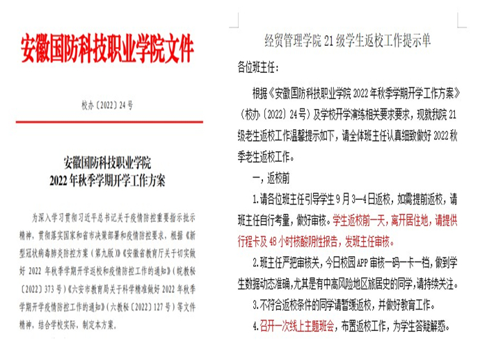 在疫情防控常态化的形势下,为做好老生返校工作,保障学生平安顺利返校,学院严格按照省教育厅和学校要求,提前开展了一系列准备工作,周密部署,精心组织。8月30日,学院召开班主任工作会议,及时传达学校有关要求,做好学院具体工作安排,制定开学重点工作提示函,应急预案,参加了实战演练。学院全力落实疫情防控要求,安排学生做好自我健康监测,每日在今日校园进行健康打卡。9月1日,学院召开学生工作会议,学院领导强调,要本着对师生生命安全高度负责的态度,严格按照返校流程和疫情防控总体要求,筑牢第一道安全防线。再次提醒全体辅导员、班主任对返校学生逐人摸排,精准掌握返校前7天每位同学的健康状况和出行轨迹,精准掌握其具体的返校日期、交通方式等基本信息,安排错峰报到时间,为顺利返校做好了充足准备。