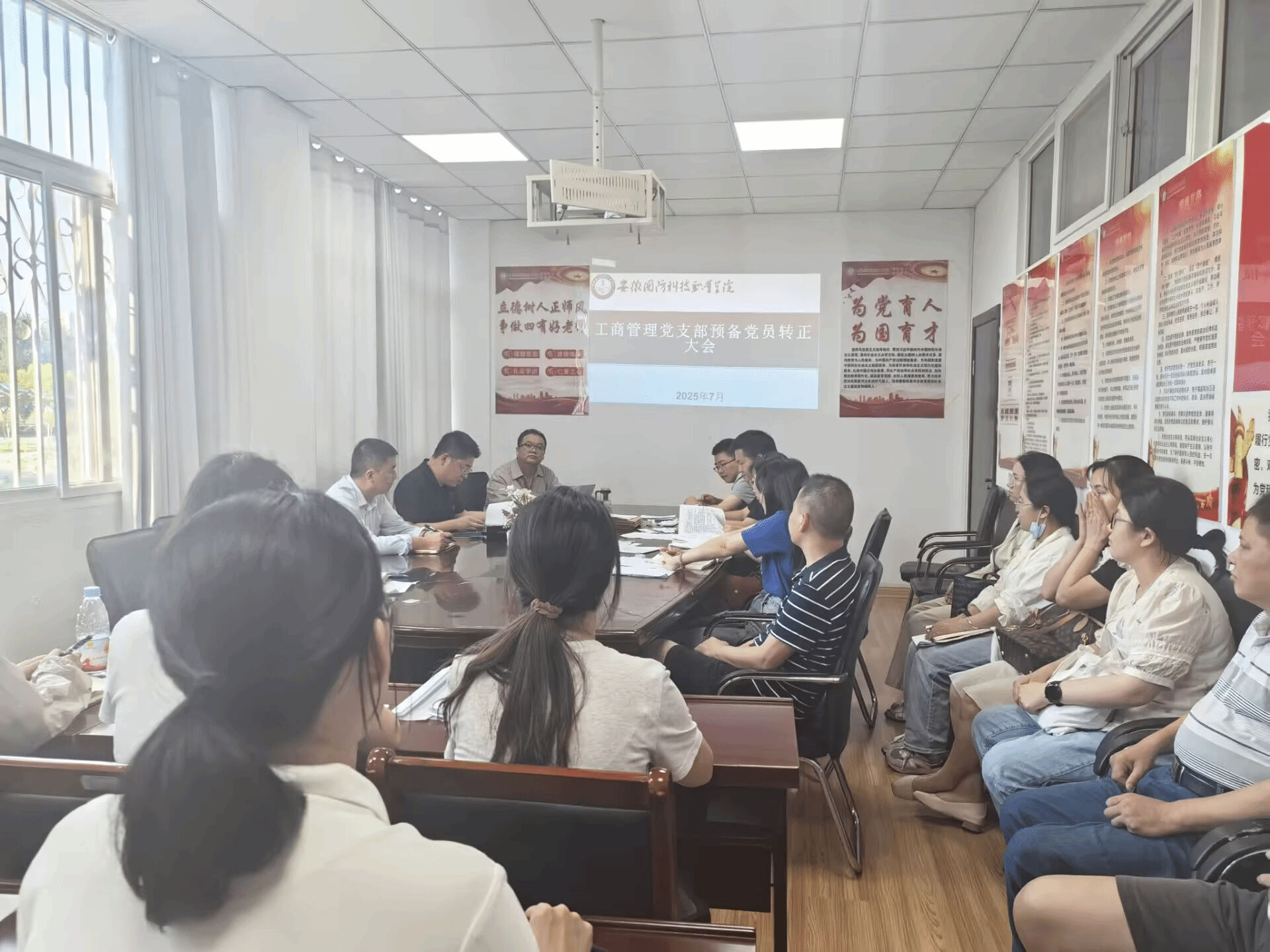 为进一步加强基层党组织建设,优化党员队伍结构,经贸管理学院工商管理党支部于7月2日下午,在知行楼202会议室隆重召开预备党员转正大会。会议严格按照党员发展程序,重点讨论和表决了关于一批预备党员转正的相关事宜。大会由党支部书记杨力同志主持。