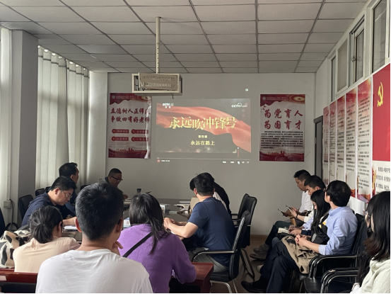 会上,全体党员集中观看了警示教育片《永远吹冲锋号》。