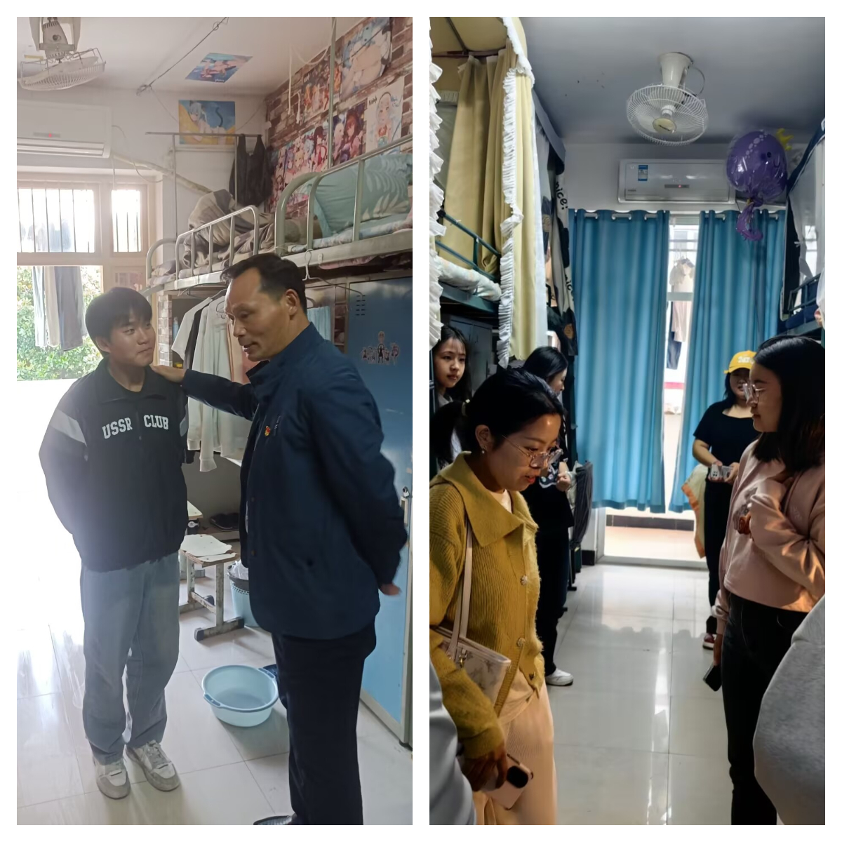 践行立德树人,强化学生宿舍文明创建,推动宿舍文化建设。集中学习活动结束后,两支部书记带领全体党员分别前往4号、5号、9号学生公寓,检查学生文明宿舍开展情况,深入了解学生近期有关情况,帮助解决有关问题。在检查过程中,党员教师们认真查看了宿舍的消防设施、电源使用情况以及安全设施是否完好有效等,还对学生的个人卫生和宿舍整体卫生状况进行了细致检查,对发现的问题及时进行了记录和反馈,并督促学生尽快整改;对文明宿舍创建提出了明确要求和指导,希望同学们按照学校和学院要求,认真开展创建文明宿舍各项活动,推动宿舍文化建设,共享美好育人环境。