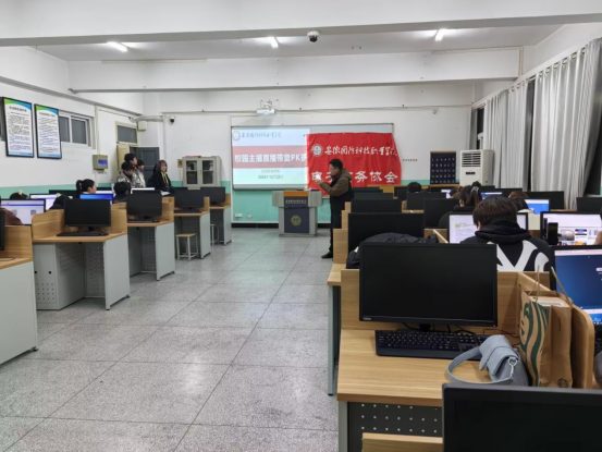为深入开展经贸管理学院“一院一品”及电子商务协会科技文化节活动,提高大学生直播电商实践操作能力,挖掘和培养优秀的直播电商人才,根据活动安排,12月25日晚,一场由电商协会举办、学生会联办的校园主播直播带货PK赛在实训楼502教室举行,来自全校共16支队伍参加比赛。