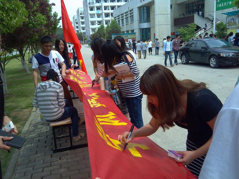 为响应学院“学风教风建设年”活动的号召,院会计协会于2013年5月3日上午11点在学院食堂门口开展“学风建设,你我同行”签名活动。