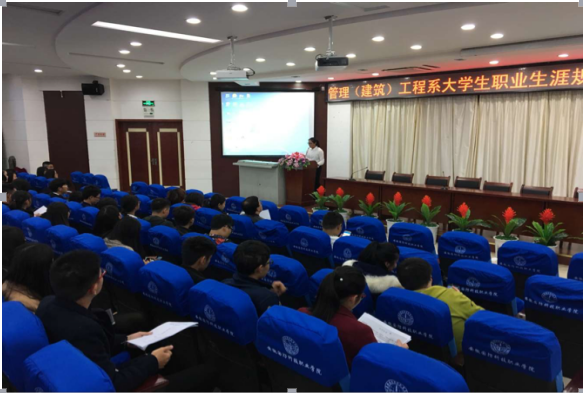 为帮助同学们树立正确的就业观,准确定位自身的发展方向。由管理(建筑)工程系学生会青年实践部举办的“大学生职业生涯规划大赛”决赛于11月2日下午3:10在图书馆报告厅顺利举行。此次大赛特邀团总支书记李文君老师、14级辅导员付玉梅老师、15级辅导员雷雨老师、工商管理教研室主任杨学分老师以及15旅管班辅导员杨懿老师担任评委