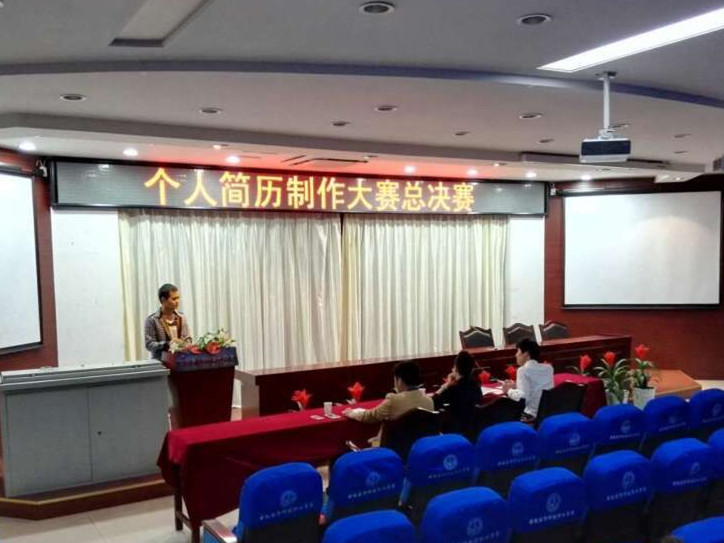 4月 27日晚 6点,由管理(建筑)工程系举办的个人简历大赛决赛在图书馆报告厅举行。东阳市心动传媒广告公司创始人徐健、杭州娃哈哈集团六安区客户经理钟衡、市场拓展部经理王辉出席本次活动并担任评委。
