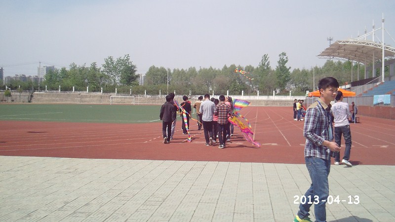2013年4月13日中午十二点半,由管理工程系学生会举办的自制风筝大赛在学院新操场举行。活动中,我系各班学生积极报名,活动采取自行组队的方式参加。在风筝放飞中大家放飞风筝,放飞梦想,并通过在风筝上写出自己的理想、愿望、祝福,以展翅飞翔的方式传递着大学生的爱心、真情和对未来美好的祝福。