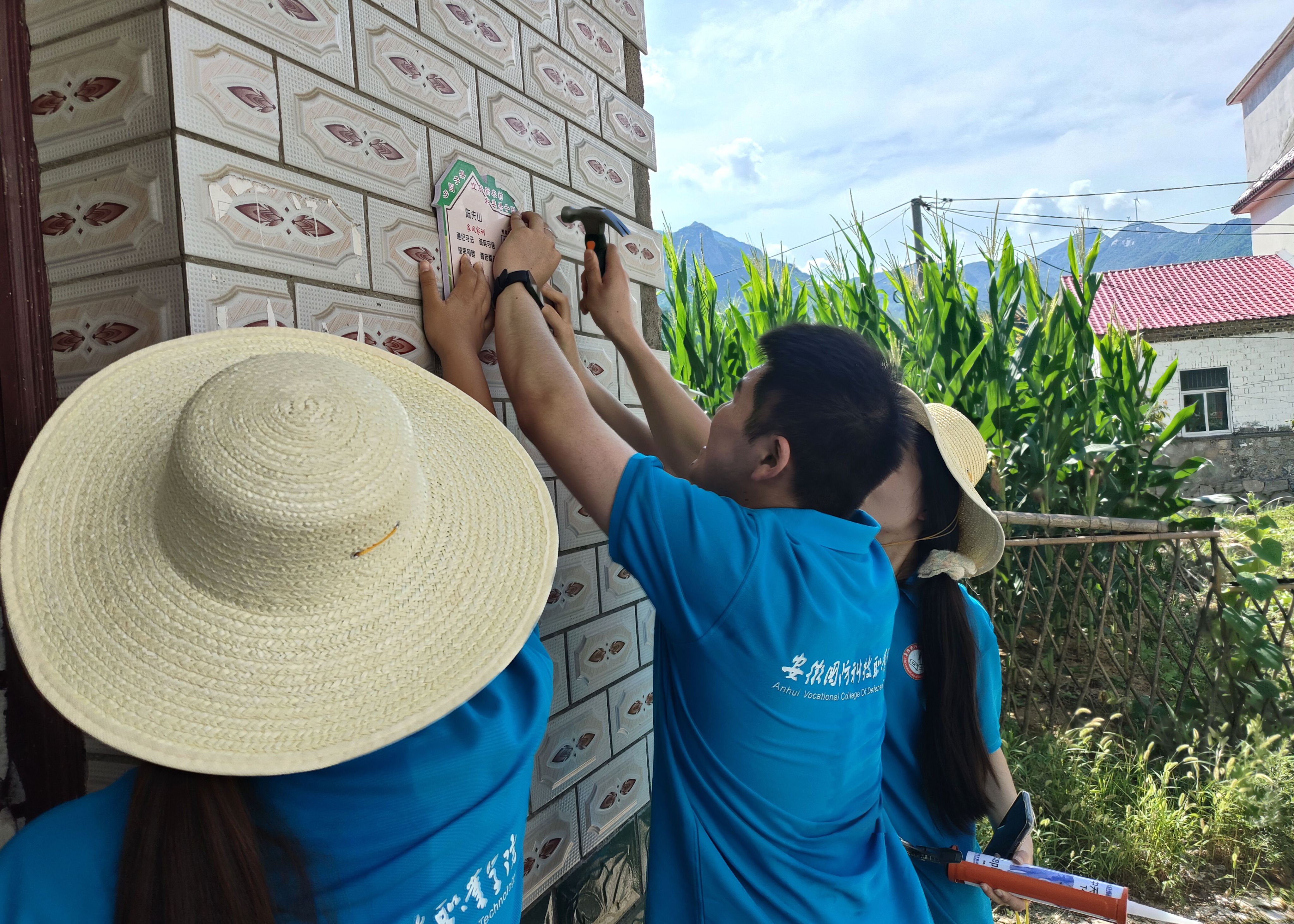 实践活动在美丽乡村建设志愿服务的号角中拉开帷幕。时值炎炎夏日,但队员们热情不减,在白纸棚村党支部书记、村委会主任闫一农及村委会工作人员的带领下,队员们手持工具分工协作,认真细致在辖区各村民房屋入户门规定位置将“门前三包”季度考评告示牌上墙,通过此举意在带动全体村民共同参与到美丽乡村建设行动中来,争做文明村民。