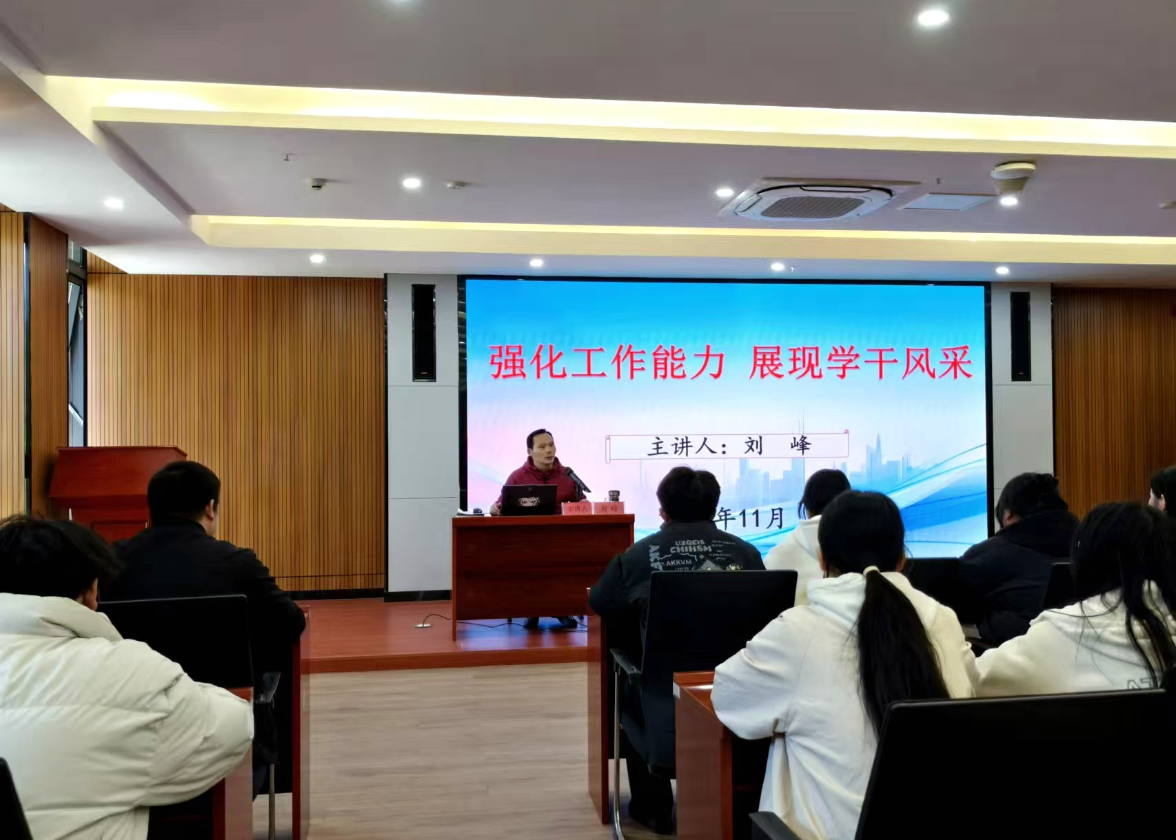 11月29日中午,经贸管理学院党总支书记刘峰为学员们带来一场以“强化工作能力 展现学干风采”为主题的精彩讲座。刘峰书记从三个维度、十二个方面向学员解读了学生干部工作中存在的主要问题、正确定位学生干部角色、强化提升学生干部综合素质和能力等内容。他结合学生工作实际案例和学院团学工作有关情况,面向参培学员提出了四点具体要求:一是以严为基,注重自身综合素质和职业发展能力培养,在工作实践中逐渐成长为符合时代发展要求和社会需求的人才;二是以实为先,强化工作过程的管理,充分发挥学生干部主动性与创新性,善于总结反思和工作复盘,牢固责任意识和实干精神;三是以效为要,聚焦建设发展要求,在团学工作实践中,聚焦学校、学院、班级建设发展要求,聚焦人才培养目标,真正成为为同学办实事、为同学解难题的责任人、担当者和服务者;四是以情为怀,重视思想引领的重要作用,在日常团学工作中要加强与学院老师的沟通,通过获得老师提供的思政教育、工作指导、心理疏导等形式支持,帮助自身快速成长与发展。