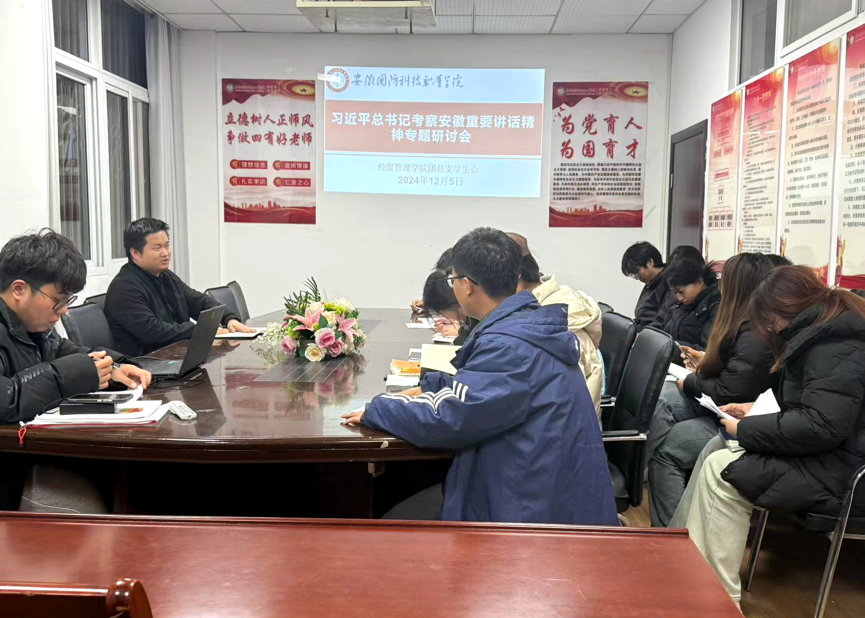 本网讯(学生通讯员 王瑞喜)根据经贸管理学院学生工作部署及院团总支工作安排,12月5日下午,学院团总支学生会召开学习贯彻习近平总书记考察安徽重要讲话精神专题研讨会,会议由学院团总支书记陈玮老师主持,团总支学生会主要学生干部参加。