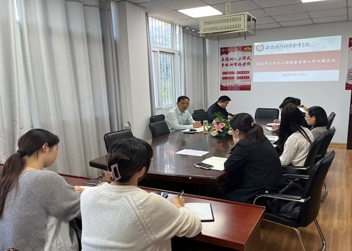 (本网讯 经贸管理学院 丁丁)为认真贯彻执行教育部关于在全体学生中实施心理普测,加强大学生心理健康教育的文件精神,同时为帮助新生更好地了解自身心理状况,从专业角度对学生心理健康状况进行测评和指导,学院严格按照学校要求,于10月16日召开2023年大学生心理普测专题工作会议,会议由党总支书记刘峰主持,23级辅导员参加。