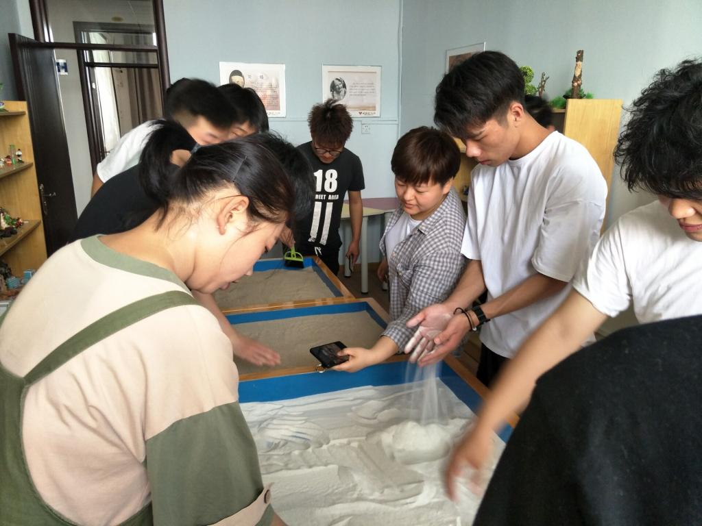 参观中,许老师向同学们介绍了心理健康中心的各个功能室。在团体辅导室,心理健康中心老师通过心理游戏、拓展训练、讨论吧等各种形式为同学们提供团体辅导活动,并通过团体成员间的互动,开发个体潜能,增强适应能力,从而实现成员的积极探索与自我成长。心理宣泄室内的“模拟人体”以及“智能音乐宣泄仪”这些宣泄设备是基于认知心理学理论,利用人际互动技术为来访者提供呐喊、击打等情绪调节训练,帮助学生科学有效地行为发泄,以此缓解内心压力。沙盘游戏室是利用一盘细沙,一架子各式各样的物件造型,来呈现出来访者的内心世界。整个参观过程中,学生们认真倾听、满怀好奇,纷纷踊跃体验。