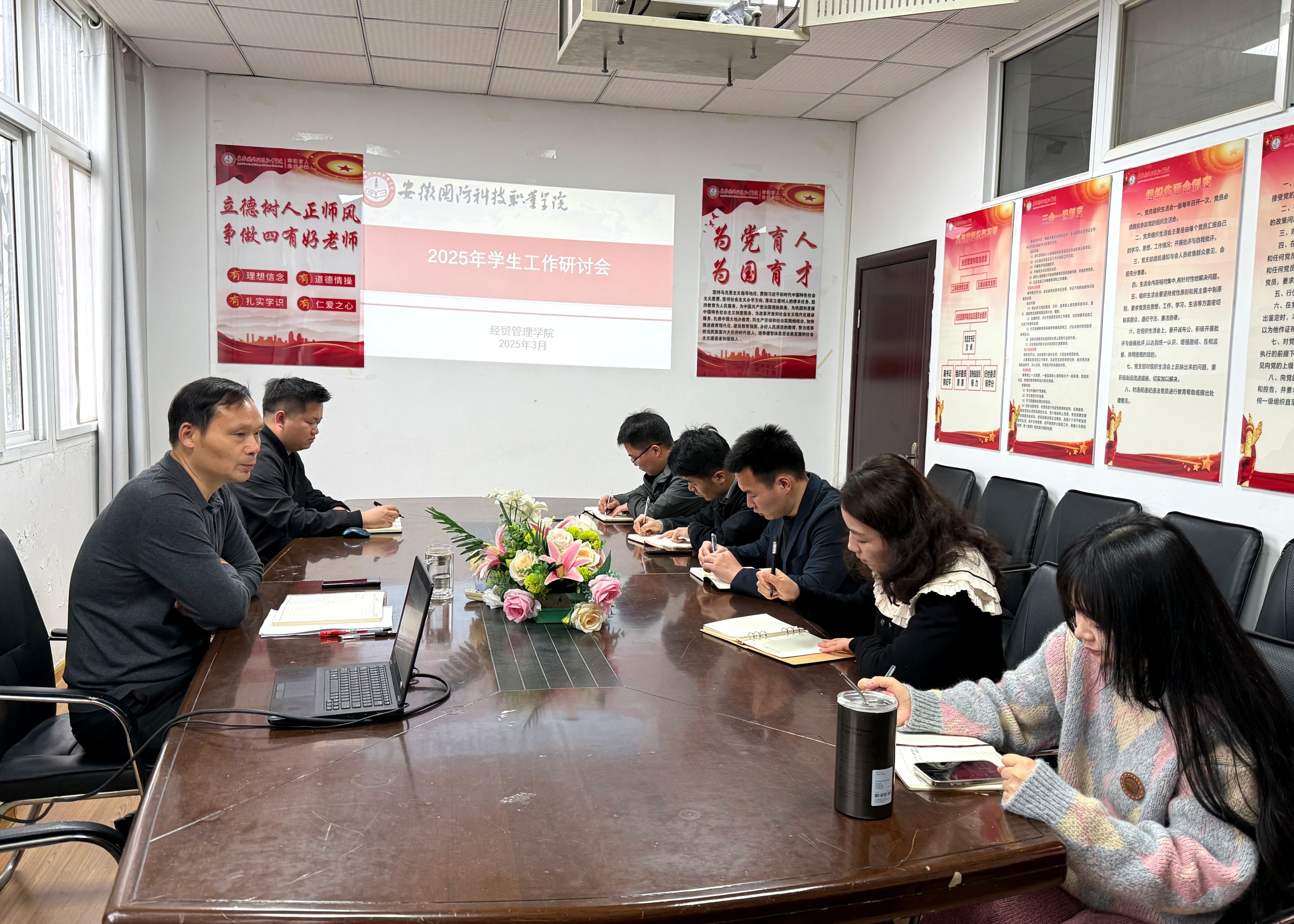 本网讯(经贸管理学院 陈玮)为进一步提升学院学生工作水平,推动学生工作创新与发展,3月27日上午,经贸管理学院召开2025年学生工作研讨会,会议由学院党总支书记刘峰主持,全体学工人员参加会议。