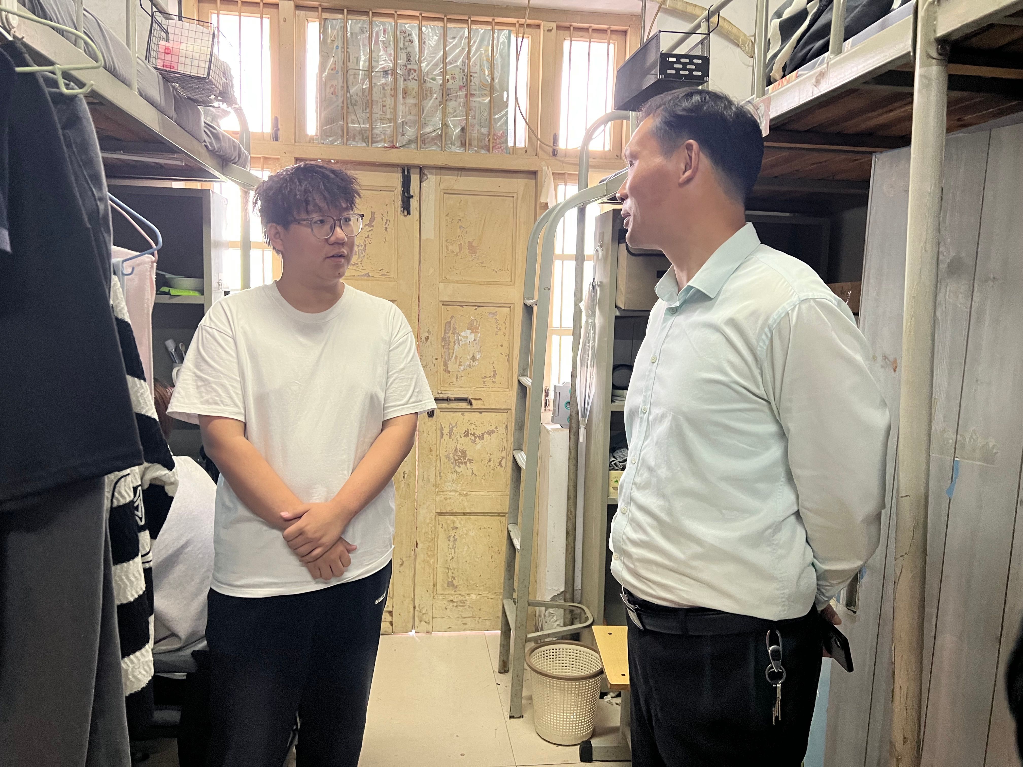 院班联动查隐患,织密安全防护网。4月29日下午,刘峰带队不打招呼深入学生宿舍开展安全检查,各班级开展自查,重点排查违规用电、违禁物品存放、设备安全隐患等问题,并与学生亲切交流,了解假期安排与返校计划,同步开展出行安全、食品安全及传染病防控教育。针对个别宿舍存在的插线板超负荷使用、杂物堆积等隐患,检查人员现场指导整改,学生均积极配合,承诺加强自我管理。要求辅导员后续跟进复查,确保安全隐患动态清零,持续强化学生安全责任意识。