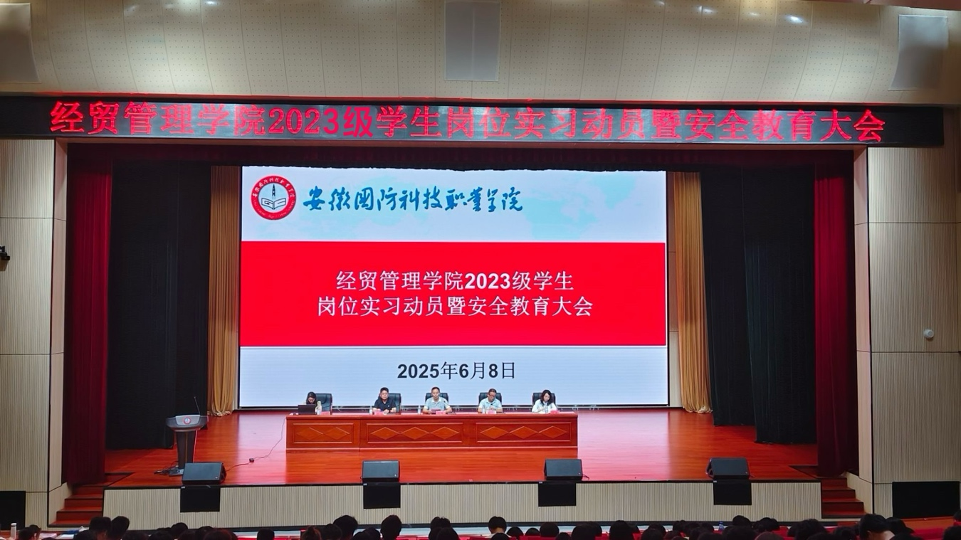 为扎实推进2023级学生岗位实习工作,强化安全教育,引导学生提升职场适应能力与就业竞争力,6月8日晚,经贸管理学院在产教融合中心多媒体报告厅召开2023级学生岗位实习动员暨预就业和安全教育大会,学院党政班子成员、2023级全体辅导员、实习指导教师及相关专业学生参会。