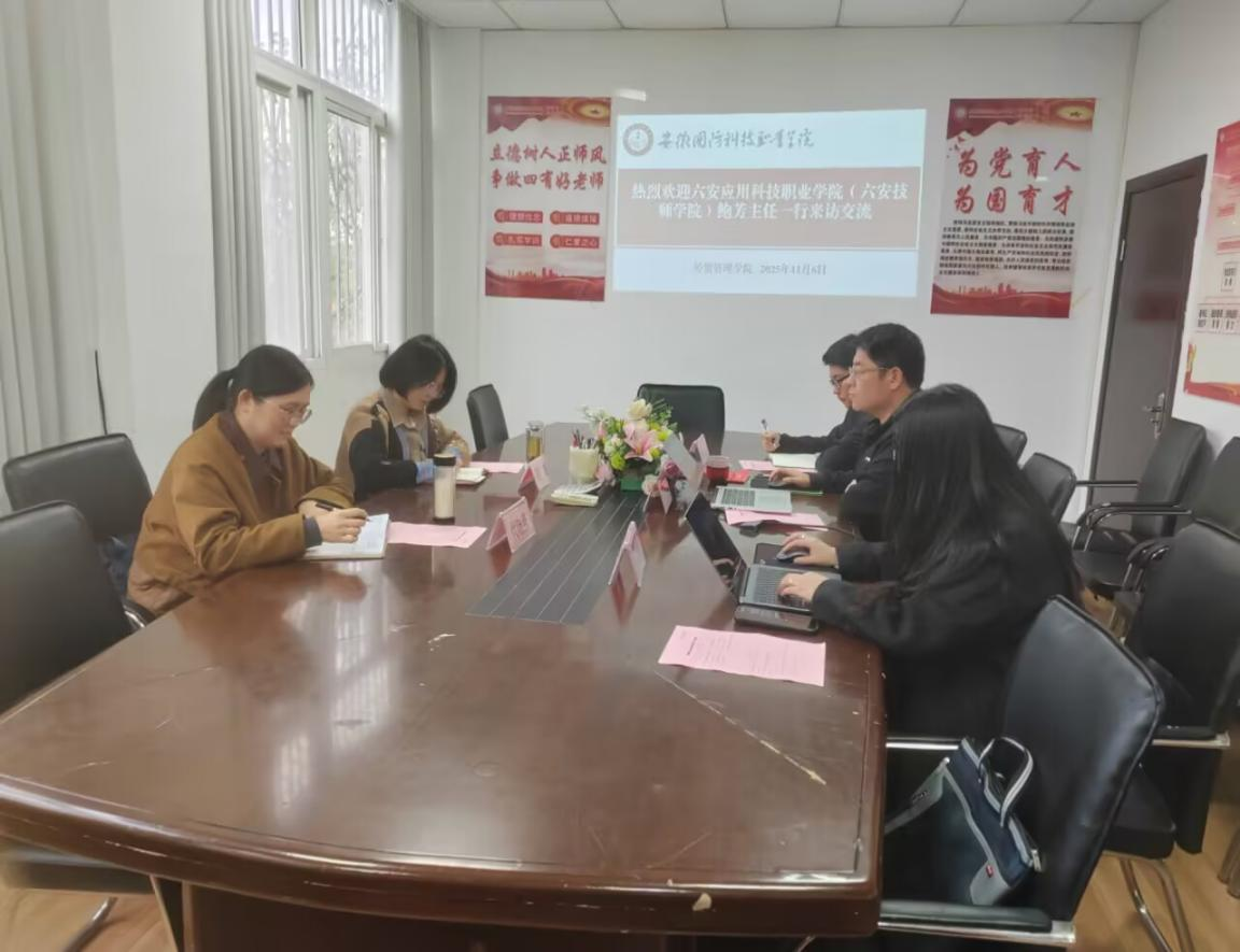 11月6日,六安应用科技职业学院商贸旅游系主任鲍芳、财务处处长代晓燕莅临我院,就现代物流管理专业建设等工作开展专题调研。经贸管理学院院长杨力、校科研处副处长、现代物流管理专业带头人白斌丽及相关教师代表热情接待并陪同调研。