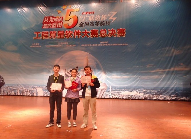 2012年11月17日至19日,第五届全国高等院校广联达算量软件大赛总决赛在厦门理工学院隆重举行,我院管理工程系教师王红林指导的陈林、王璐璐、席小东三位同学以优异成绩荣获三等奖。