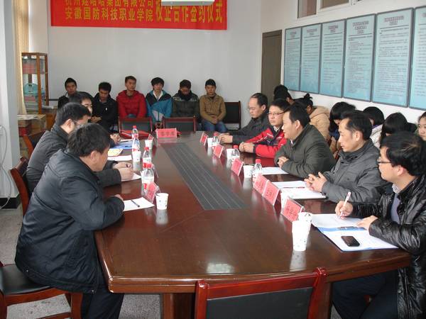1月9日上午,我院与杭州娃哈哈集团有限公司在管理工程系会议室举行了校企合作签字仪式。杭州娃哈哈集团有限公司皖南分公司市场部经理柳鑫、六安区域销售公司经理余泽波、六安市区销售部经理付行珀、六安区域市场部陈晓春、副院长丁守宝教授、管理工程系领导、教研室主任及市场营销专业教师出席了签字仪式。仪式由管理工程系副主任刘圣春主持。