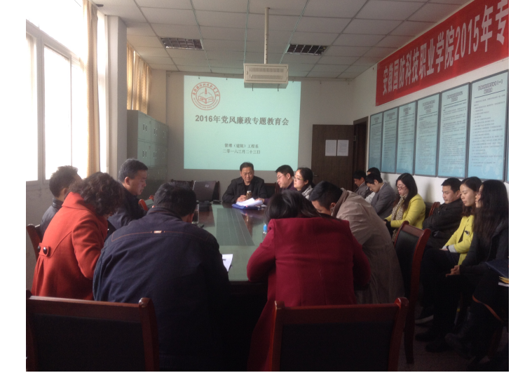 3月23日下午,管理(建筑)工程系组织召开党风廉政教育专题会议,组织全体党员围绕着学院2016年党风廉政建设工作要点文件精神进行深入学习,系党总支书记杜先扬主持并领学了相关内容。