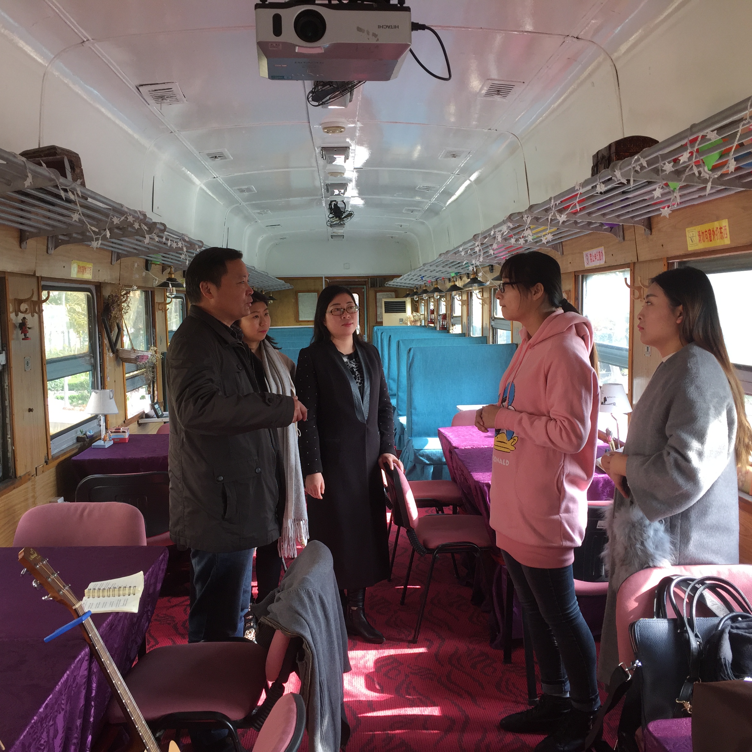 张显国一行参观酒店专业校内实训基地火车咖啡馆并与学生交流(供稿:杨懿)
