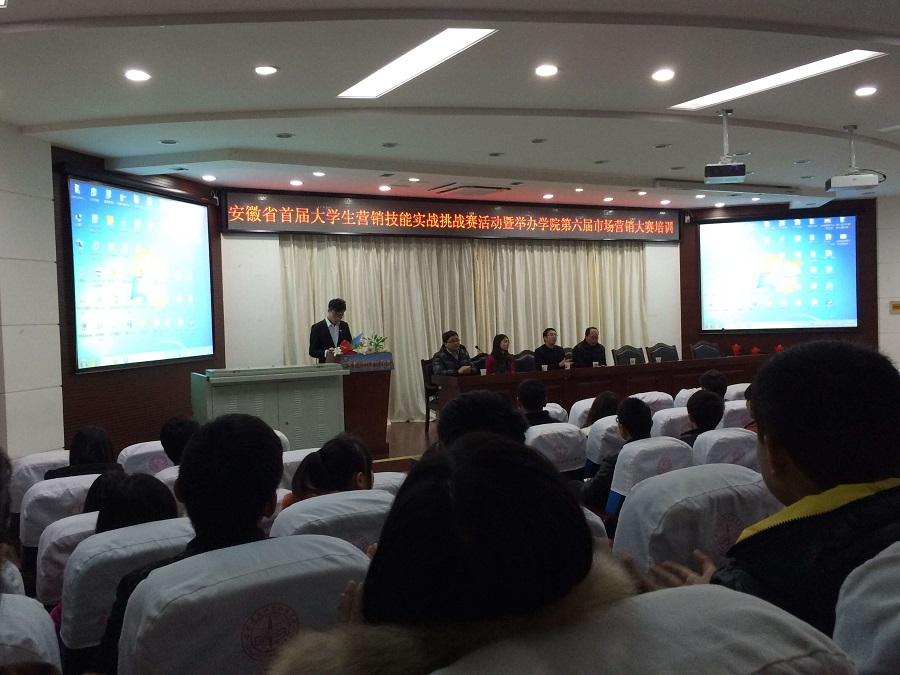在院、系领导的关心与支持下,我院于2015118日晚,在图书馆报告厅由组委会储胜强老师、市场营销专业杨学分老师为同学们培训相关内容和技巧;比赛过程中,马业保、杨学分、袁泓、雷雨、韩银川、丁辉、储成芳、刘猛等几位指导老师,利用假期时间对学生的销售、营销策划书和总结报告进行了精心指导。
