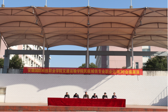 2017年12月20日中午交通运输学院在校塑胶操场隆重举行民航城铁专业职业化(列队)会操展演,出席本次活动的有中航国铁章道林主任、中航国铁吴文斌主任、交通运输学院教学部李建新主任、交通运输学院院长助理江红流主任、交通运输学院学工部胡晏平主任、职业化课程指导阮露老师、职业化助教周文慧老师、各班级班主任以及参加会操展演的2016级全体学生,2017级新生在体育看台观摩,近900人参加本次活动。