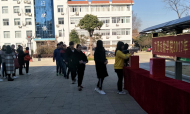 全院教职工及同学列队等待捐款