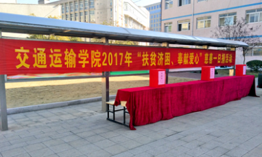 2017年12月22日,为响应六安市和学院《关于开展2017年“慈善一日捐”活动的通知》要求,交通运输学院在校1号教学楼前广场积极组织开展了“扶贫济困、奉献爱心”慈善一日捐活动。参加捐款的共有20个班级,师生共计900余人。