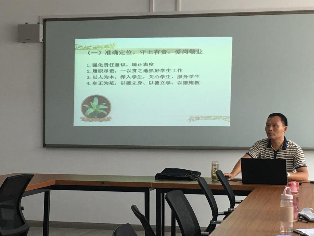 为进一步提升学生工作水平, 8月27、28日交通运输学院在实训楼403室组织开展了为期2天的教师、班主任培训。培训工作邀请了经贸管理学院党总支书记杜先杨、党总支副书记刘峰,交通运输学院教学部主任李建新、学工部主任吴文斌、院办兼招生办主任江红流主讲,全体教师、班主任参加培训。