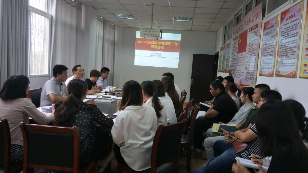 规范学生资助工作流程,精心组织。学院分别在9月16日及29日召开了高职、中职资助工作专题会议,部署重点资助工作,院党总支书记杜先杨、党总支副书记刘峰、辅导员及全体班主任参加了会议。会上,刘峰宣贯了《关于成立经贸管理学院资助工作领导小组的通知》(校经贸学院函〔2019〕65号)文件,许凤麟结合《关于做好2019年学校国家奖助学金推荐评审工作的通知》(校学函〔2019〕36号)文件精神详细说明了本学期各项资助工作的具体事宜;杜先杨对2019年的学生资助工作提出了要求,一定要严格把关、确保原始资料的准确性、评审工作的公平性和时效性;要将学生的困难放在心上,要高度重视资助工作要认真学习相关文件精神,保质保量完成国家三奖及其他资助工作;要对家庭经济困难的学生多点关爱,要加强家庭经济困难学生诚信意识和感恩意识教育。