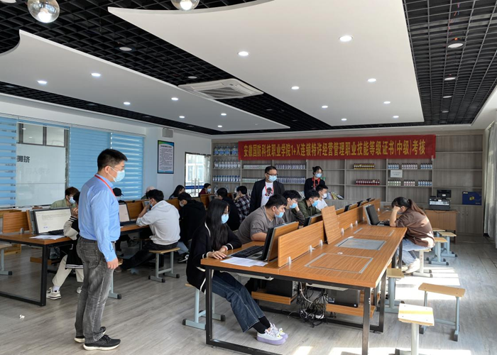 学院领导十分重视“1+X”职业技能等级考证,为确保考试正常、有序进行,对考场系统安装调试、考试报名、考试组织等相关工作进行了精心安排。市场营销专业教师团队精心组织考试工作,学院院长杨力、副院长杨学分到考场进行现场巡查,确保考试顺利进行。本次考评由“1+X”连锁特许经营管理职业技能等级评价组织—深圳市逸马科技有限公司对55名考生进行考核。