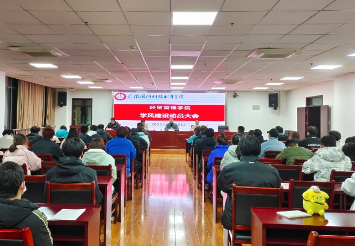 为切实提高学院教育教学水平和人才培养质量,持续推动优良学风建设,经贸管理学院于12月5日晚在秉心楼12楼会议室开展学风建设动员大会,院党总支书记刘峰及全体学工人员出席本次大会。学院学生会成员与各班代表参会,大会由许凤麟主持。