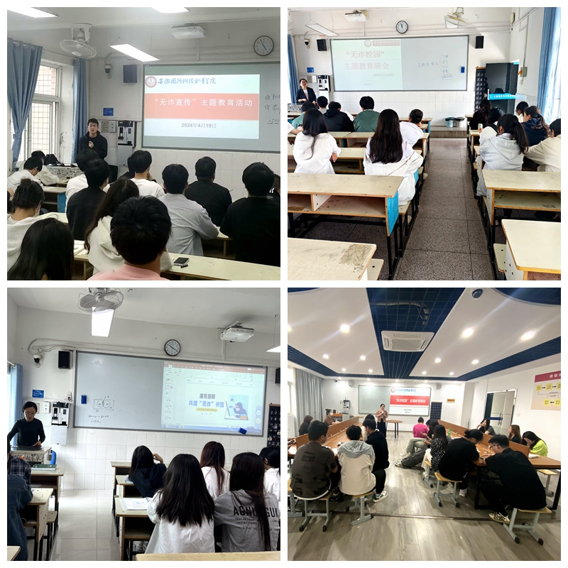 主题班会,强化宣传教育。4月22日至23日,学院各班级组织召开“无诈校园”主题教育班会。会上,各班级辅导员带领学生学习防范校园电信诈骗、防范传销进校园的典型案例和知识,引导广大同学擦亮眼睛,发挥主动性,把抵制诈骗、传销的客观要求转变为同学的自觉行动。