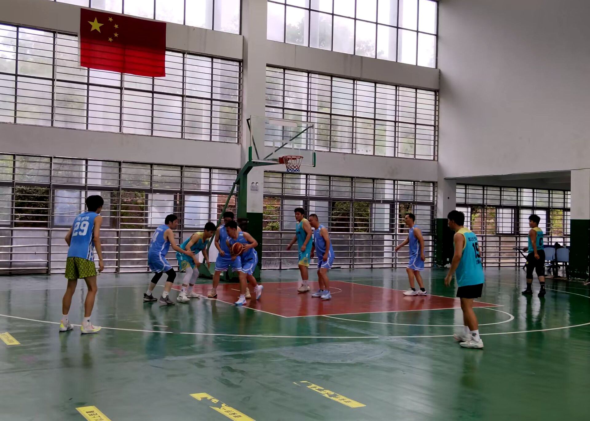 体育赛场燃激情,活力青春展英姿。为帮助学生们纾解心理压力,营造健康、活泼的离校季氛围,6月中旬,学院举办了师生篮球赛活动。篮球比赛中,院党总支书记刘峰带领男教职工与学生们共同比拼。篮球比赛现场,气氛热烈,队员饱含激情,用各种篮球技巧与精准投篮不断得分。学生们将不舍之情化作前行的动力,彰显团结和谐、勇于拼搏的精神风貌,同时促进师生间的感情交流,体现师生间的深厚情谊。