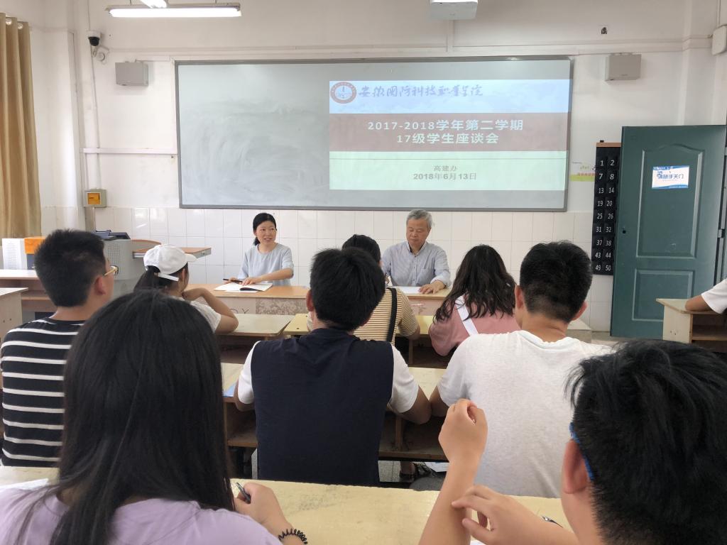 6月13日下午,beat365召开了2017-2018学年第二学期学生座谈会。会议分2016和2017级两个会场,分别在beat3652号教学楼202教室和203教室举行。本次座谈会由校督导员夏世林和袁志安主持,参加会议的还有高建办老师叶高洁、刘星怡,以及来自各学院2016级、2017级各班的50余名学生代表。