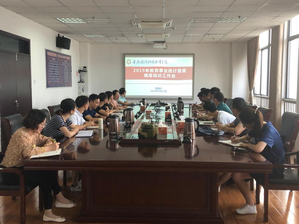 9月12日上午,我办在秉心楼11楼第一会议室召开了教育事业统计报表填报(以下简称高基报表)填报培训会。学院各部门、二级学院数据采集员参加了会议,会议由韩玉龙老师主持。