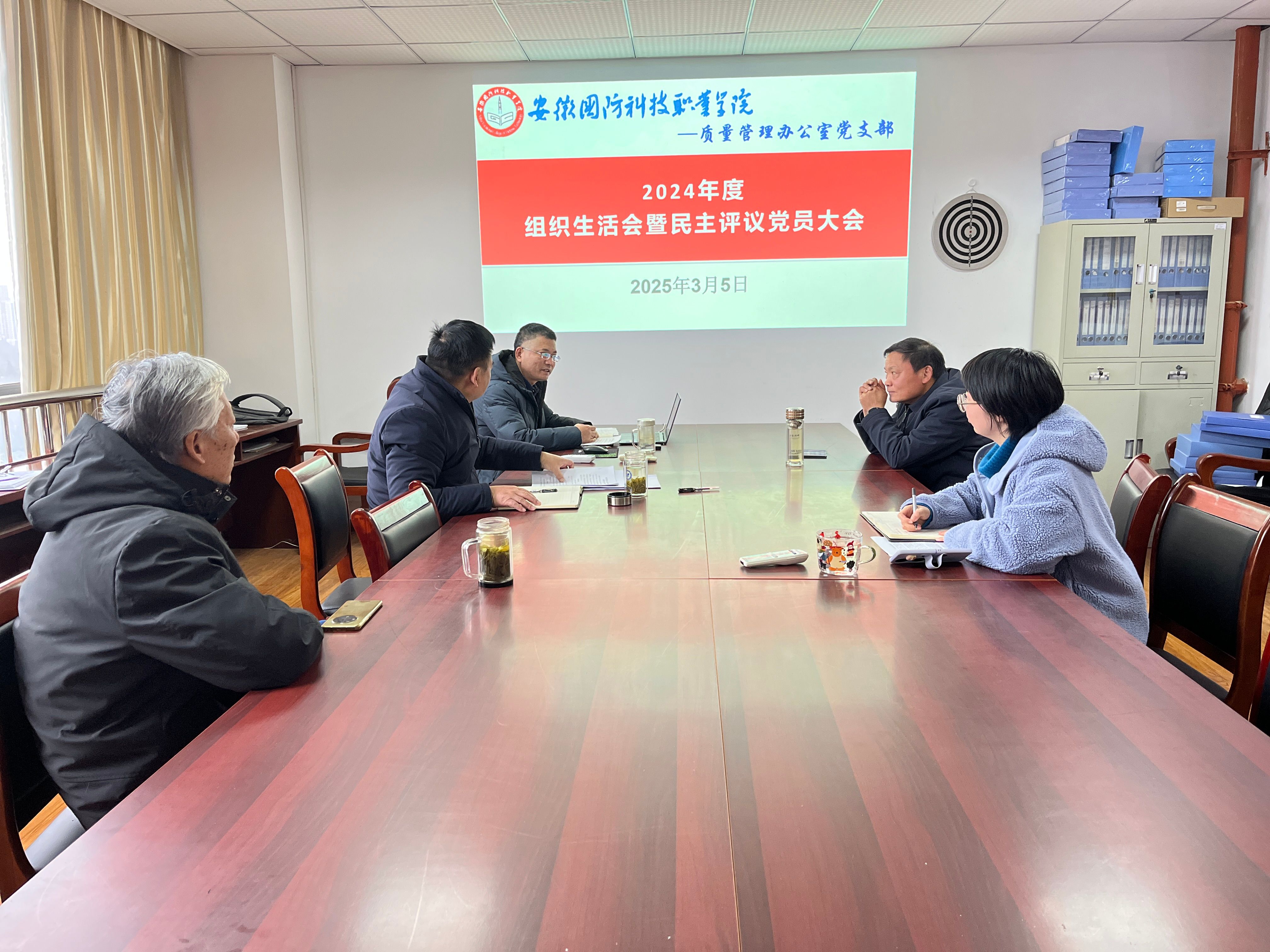 本网讯 为深入学习贯彻习近平新时代中国特色社会主义思想和党的二十届三中全会精神,巩固深化党纪学习教育成果,3月5日下午,质量管理办公室党支部在秉心楼1204会议室召开了2024年度组织生活会,并开展了民主评议党员工作。支部全体党员参加会议,会议由党支部书记黄存东主持。