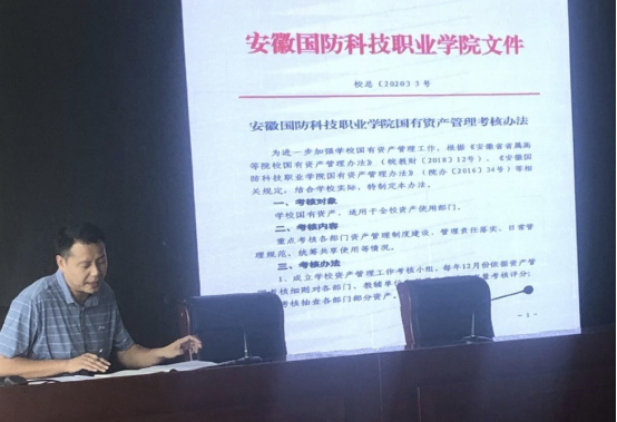 会上,张伟业主任传达了《安徽省财政厅关于开展省直行政事业单位国有资产管理问题排查及专项整改工作的通知》(皖财资〔2020〕347号)、《安徽省财政厅关于做好省级行政事业单位资产卡片信息管理的通知》(皖财资〔2020〕400号)、《beat365在线唯一官网国有资产管理考核办法》(校总〔2020〕3号)等文件精神,介绍了此次国有资产管理问题排查及专项整改工作的目标任务、方法步骤及工作要求。