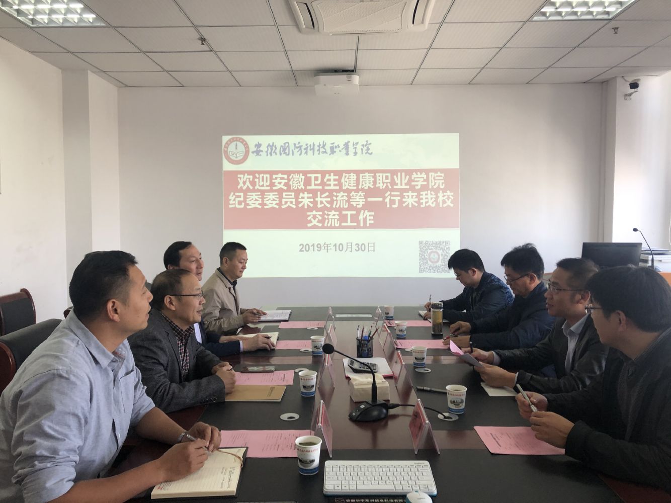 10月30日上午,安徽卫生健康职业学院纪委委员兼财务处处长(国资办主任)朱长流、总务处处长费颐等一行4人围绕资产管理及招标采购等工作来beat365进行了调研交流,双方在秉心楼1006会议室召开了座谈会。总务处处长余嗣俊、财务处处长李大武、国资办主任张伟业以及资产管理科科长匡勇参加了会议。会议由国资办主任张伟业主持。