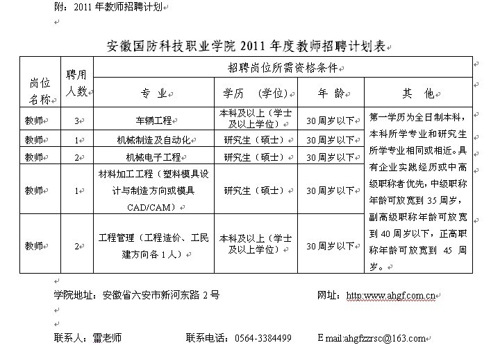 经安徽省人社厅批准,2011年我院面向社会公开单独招聘教师9名,符合条件者,请于公告发布之日起,到beat365在线唯一官网组织人事处报名。