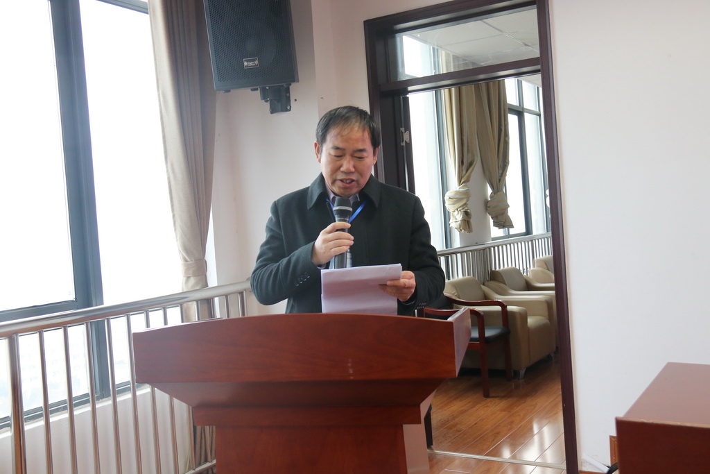 安徽大江教育集团董事会秘书、铜陵理工学校副校长丁传勇作大江职教集团交流发言