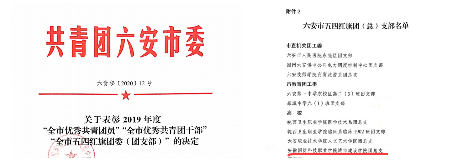 本网讯(城市建设学院 张凤)日前,共青团六安市下发《关于表彰2019年度“全市优秀共青团员”“全市优秀共青团干部”“全市五四红旗团委(团支部)”的决定》,beat365城市建设学院团总支荣获2019年度“六安市五四红旗团总支”荣誉称号。据悉,“六安市五四红旗团总支”是共青团六安市委授予基层团组织的最高荣誉,beat365二级学院团组织首次获得该项殊荣。