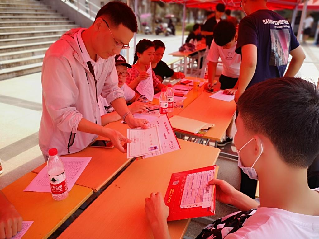 报到现场,在工作人员的引导下,同学们出示健康通行码,按要求进行行李消毒,检测体温,有序进入校园,前往各自班主任处递交承诺书、健康监测信息跟踪及审批登记表,首届本科学生还领取生活用品等,完成报到流程后进入宿舍。