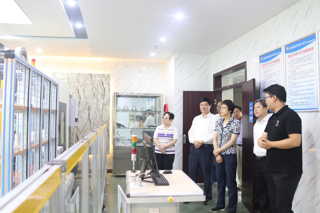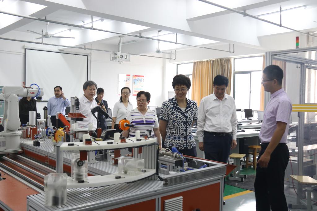 张文静一行首先参观了学校校史馆、国防教育体验馆,实地考察了学校汽车技术、数控技术、机电一体化以及工业机器人等实训中心,深入了解了beat365发展历程、办学定位、专业优势、竞赛成果和校园文化特色。
