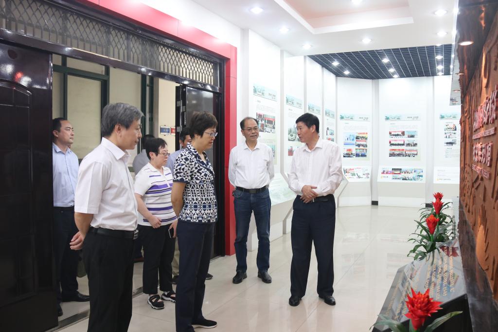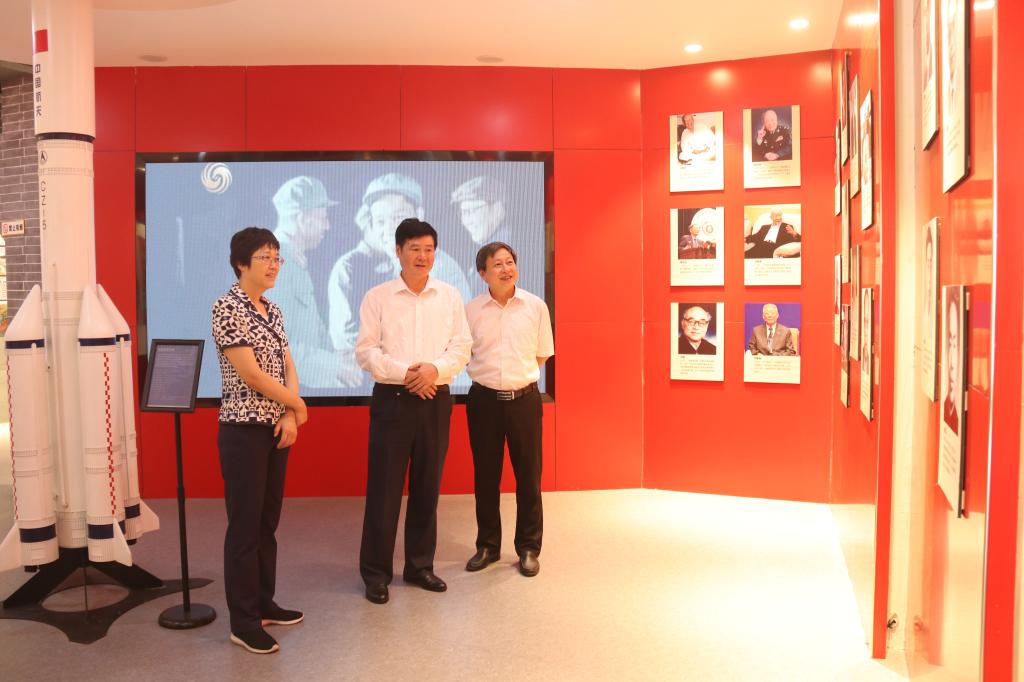 省总工会副主席张文静(右三)、省委军民融合办副主任吴端阳(左二)一行参观校史馆