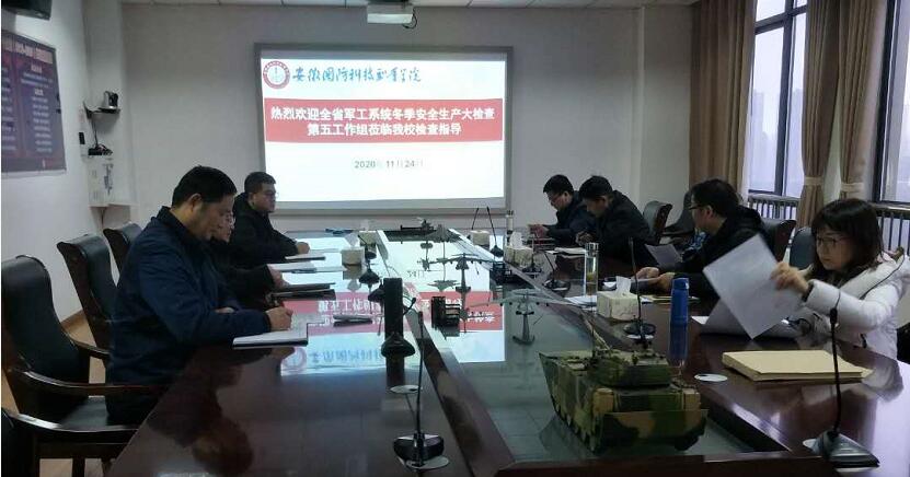 本网讯(安全保卫处 杨振亚)11月24日,安徽省军工系统冬季安全生产大检查第五检查组来校督查安全工作,校党委委员、副校长冯伦久,学生处、安全保卫处负责人及相关处室人员陪同检查。